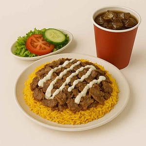 A classic platter with perfectly seasoned lamb over rice. The best Halal food near me in Newport News!