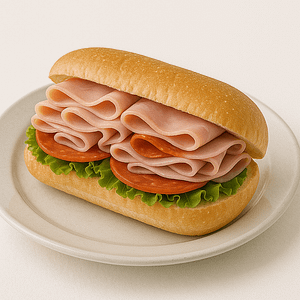 A zesty sub with ham, salami, and pepperoni.