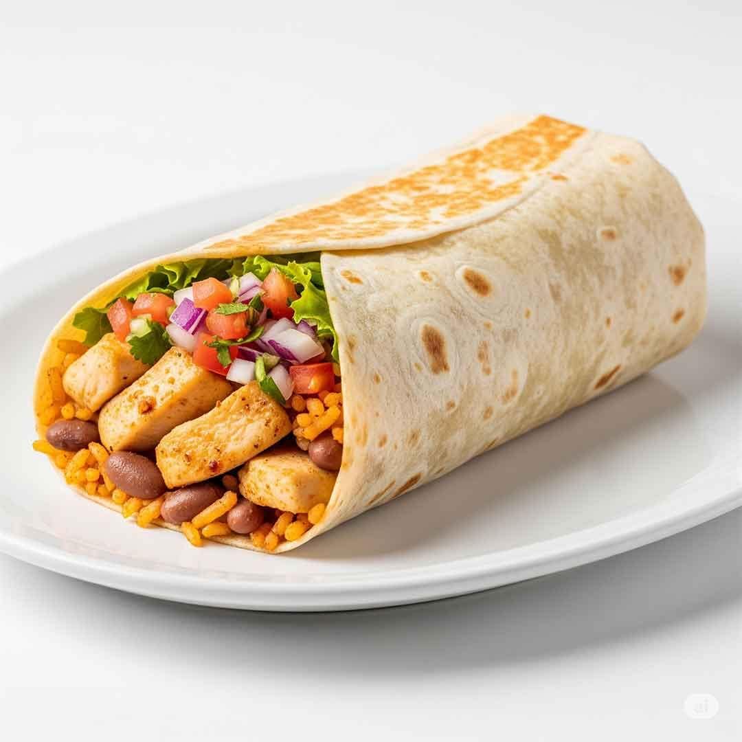 Loaded Chicken Burrito stuffed with tender grilled chicken, rice, beans, cheese, and salsa — wrapped warm and fresh at NYC Kings Deli, Newport News VA. 🌯🔥