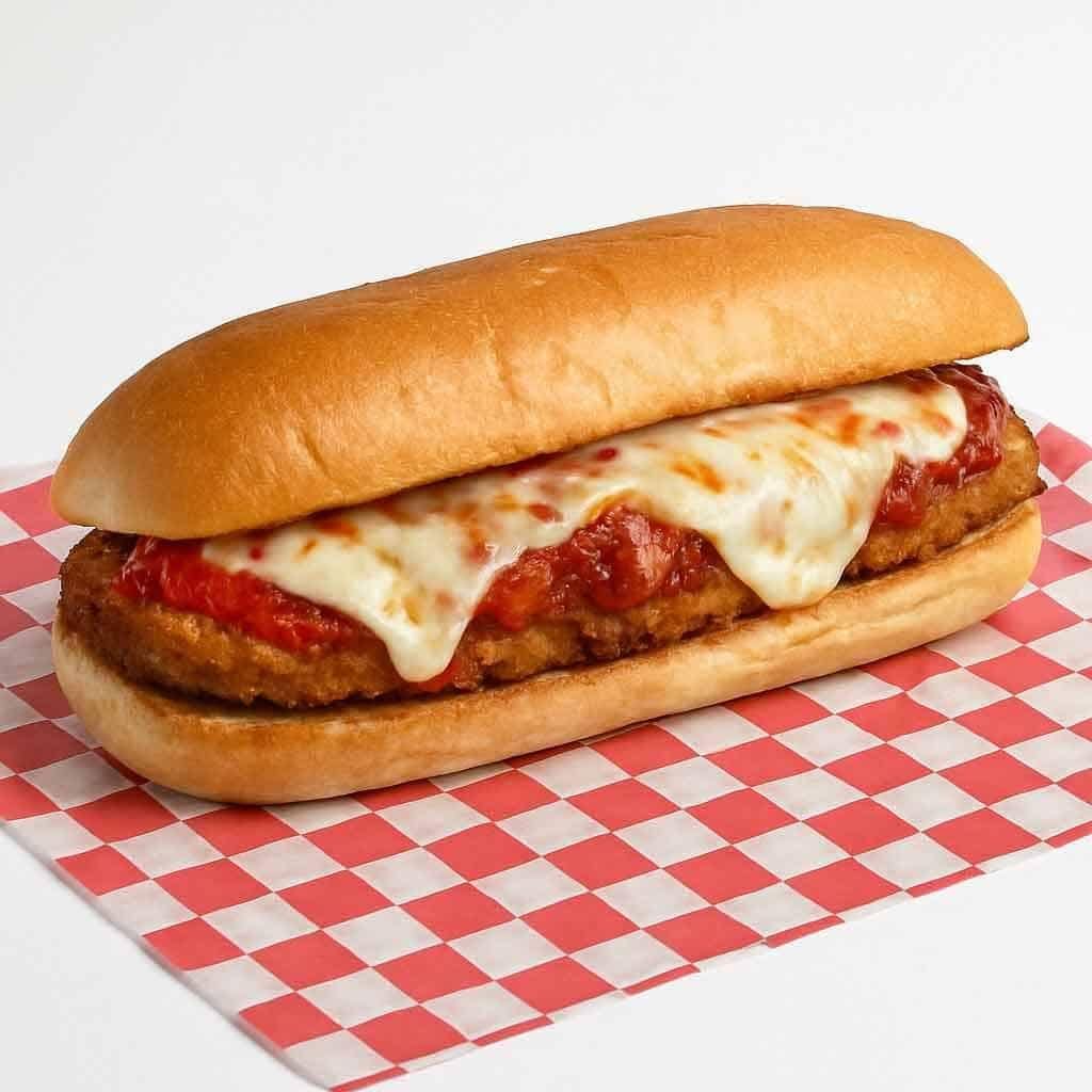A delicious Chicken Parmesan Hero with crispy chicken, marinara sauce, and melted mozzarella. The best restaurant near me in Newport News!