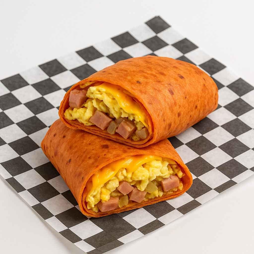 A delicious Southwest Wrap with eggs, onions, ham, and cheddar cheese. The best breakfast near me in Newport News!