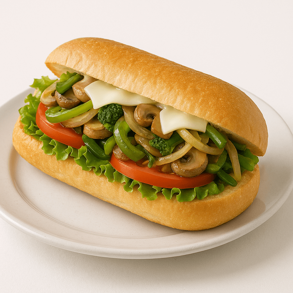 Mushrooms, Onions, Broccoli, Green Peppers, Lettuce, Tomatoes, White American Cheese, and Mayonnaise